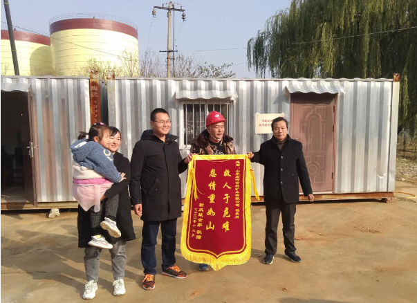 “救人于危難,恩情重于山”——12月6日一大早,山東宏河百利礦業(yè)有限公司院內(nèi)鞭炮聲陣陣,鄒城市嶧山鎮(zhèn)西鞏村靳慶斌全家為公司員工茌良朋送來了“救人于危難,恩情重于山”的錦旗。